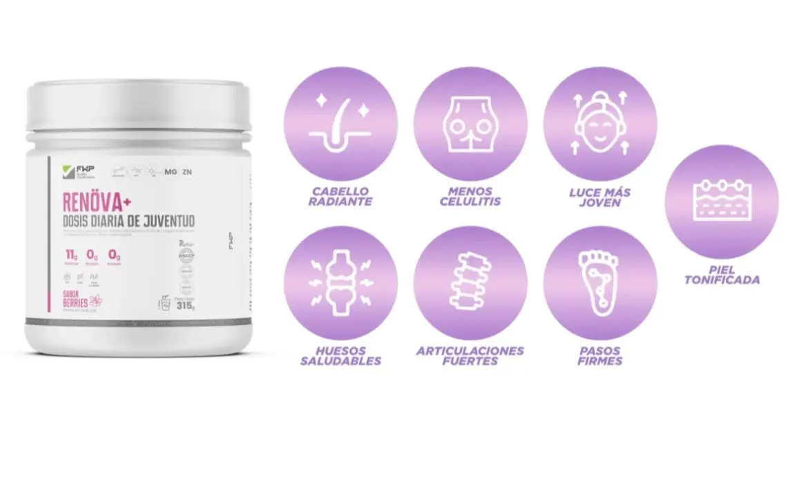 ¿El producto tiene azúcar o gluten? No. RENOVA+ está libre de azúcar, sin gluten, y sin rellenos dañinos. Es apto para consumo diario por adultos, incluso en dietas keto o saludables.